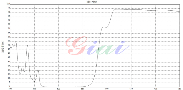 4.陡峭的过渡边缘:高品质的二向色镜可以在红光和绿光的交界波长处实现非常陡峭的透射/反射率变化曲线,实现更精确的波长分离。